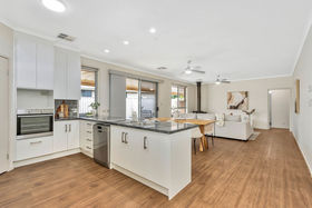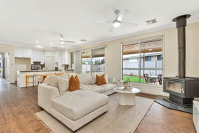 Freshly painted throughout, the home presents light, bright interiors with a welcoming feel from the moment you arrive. A clever mud room at the front entry creates the ideal drop zone for shoes, bags and busy family life, while inside the spacious floorplan offers four bedrooms, two bathrooms and two separate living areas, giving everyone room to relax. Designed with everyday comfort in mind, the home features ducted reverse-cycle air conditioning for year-round climate control, along with the added benefit of rainwater. The kitchen sits at the heart of the home, overlooking the living and dining area and flowing effortlessly to the outdoor entertaining space, perfect for weekend barbecues or relaxed evenings with family and friends.