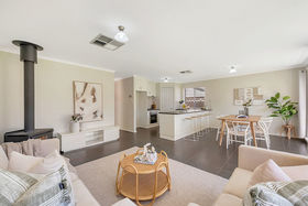 To the rear of the home is the open plan kitchen/living and dining area with beaming natural light and a nice outlook to the rear yard. The well appointed kitchen features gas cooktop, rangehood and dishwasher plus pantry and generous working bench and storage cupboard space.