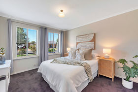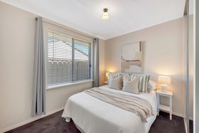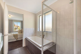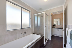 The flowing floor plan consists of a master bedroom with walk in robe and plush underfoot carpet and entry to the two way bathroom offering soaking bath tub and separate shower.