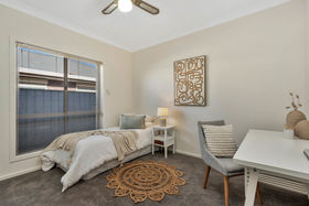 Designed with flexibility in mind, the home offers four spacious bedrooms plus a study or optional fifth bedroom. The master suite is privately positioned and includes a walk-in robe and ensuite, while bedrooms two, three and four all feature built-in robes and ceiling fans. Neutral tones, high ceilings and ducted reverse-cycle air conditioning ensure year-round comfort throughout.